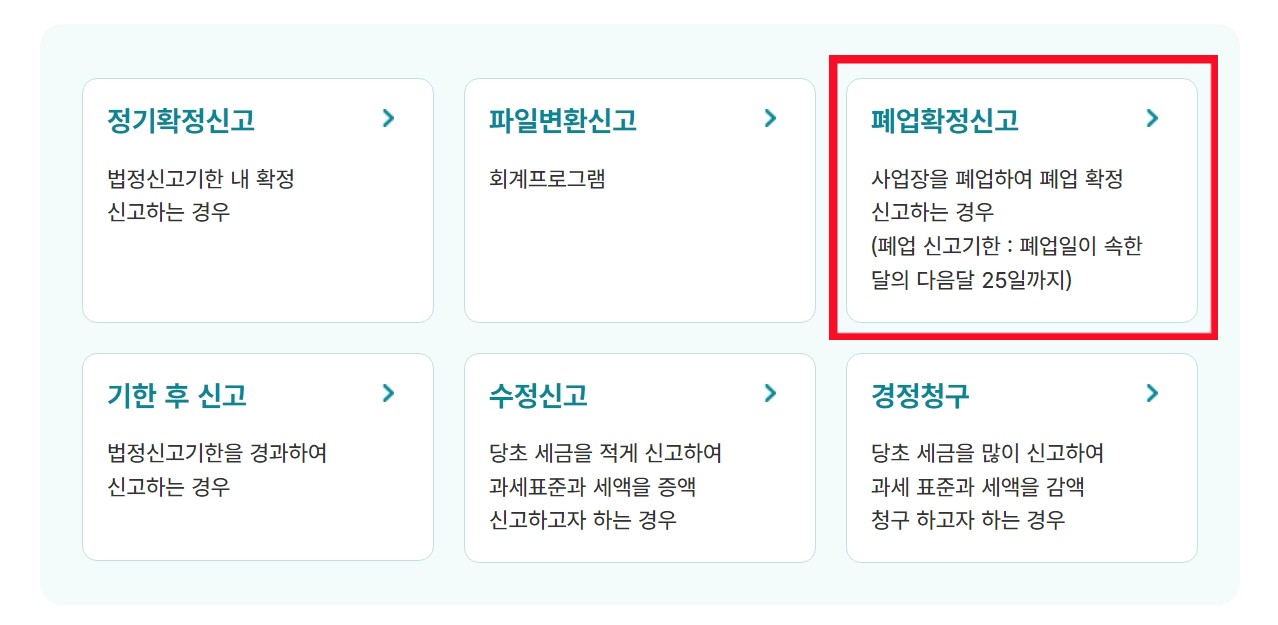 - 신고 기한 준수: 폐업일이 속한 달의 말일로부터 25일 이내에 신고를 완료해야 합니다. 기한을 넘기면 가산세가 부과될 수 있으므로 주의해야 합니다.
