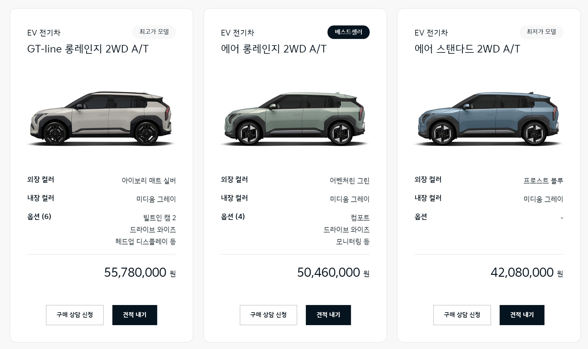 기아 EV3는 스탠다드와 롱레인지 두 가지 모델로 출시되며, 각 모델의 가격은 다음과 같습니다